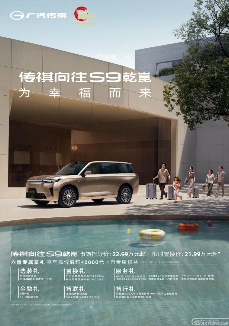 传祺向往S9乾崑系列旨在打造的,不止是一个移动空间,更是一个承载家人欢笑与安憩的移动"共享客厅"。作为22万级唯一标配智电三大件的中大型家庭SUV,传祺向往S9乾崑系列必将成为千万中国家庭可以放心托付的选择,陪伴他们开启一段段幸福美好新生活。