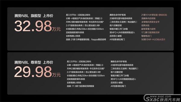 【陕西汽车网讯】10月28日,"大六座安全豪华SUV"腾势N8L正式上市,共推出2款车型,官方指导价为29.98万元~32.98万元!N8L全系标配"六大核心科技",以超越传统豪华的品质标准,诠释家用车的豪华感、安全感与科技感,创造让全家人动心、舒心、省心、安心、暖心的出行体验,以"五心体验三感相伴"定义美好出行,将奢华体验平等赋予每一位家庭成员。