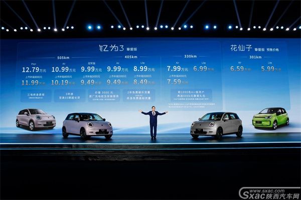 钇为3挚爱版上市的同时,有着超30万用户的花仙子系列也宣布推出挚爱版,续航301km,并同步开启预售,预售价格为5.99万元-6.59万元。钇为3和花仙子这对挚爱组合将在纯电小型车市场形成强有力的产品矩阵,为用户带来更多选择!