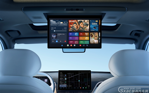 eπ008搭载15.6英寸智能后排娱乐屏,可实现无线投屏、一键飞屏等贴心功能,配合全车20个扬声器和7.1.2声道WANOS全景声环绕音效,随时随地,摇身一变"家庭影院"。