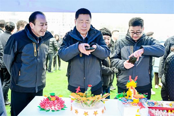 开幕式现场还设置了精彩纷呈的文体旅嘉年华盛会。既有哪吒、小鹏、岚图等多家品牌新能源汽车展,又有府谷老席八碗、海红果、府谷黄米等当地特色展,还有府谷剪纸、堆绣、编织、农民画、面花等非遗文化展,不少观众纷纷驻足体验,品尝购买。