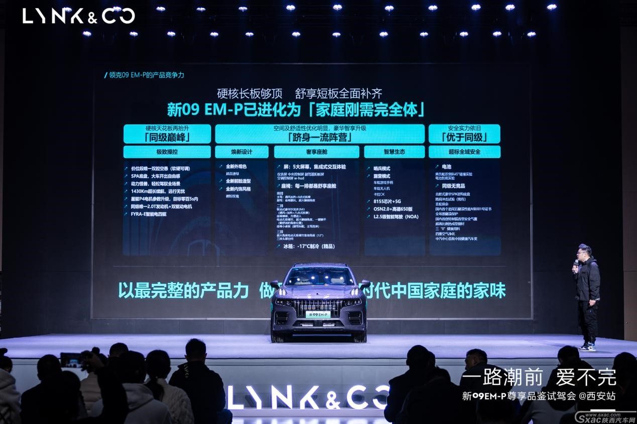 新09EM-P是领克汽车基于对家庭用车需求的深入洞察与理解,倾力打造出的一款诚意之作。作为领克家族的中大型旗舰SUV,新09EM-P延续了09家族长久以来出色的性能和驾控体验,并在产品力上持续进阶。自新车上市和开购以来,便获得了市场和广大消费者的认可,成为众多用户喜爱的产品。