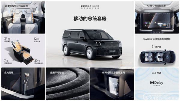 极氪009光辉后排座舱如同"移动的总统套房"