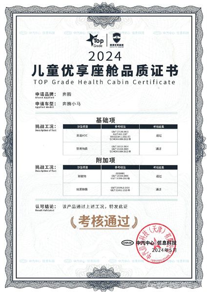 关键时刻靠得住,踏实放心好安全。10个核心刚度环加6处高强钢防撞梁,形成稳固笼式安全车身,小车也有"硬骨头";100多项严苛测试,铸就"无畏级"安全电池。IP68级高标准防水达到国标要求2倍,涉水不漏电,冲击不起火;奔腾小马还获得了中汽中心颁发的"儿童优享座舱品质证书",致敏物测试、禁限用物质测试、高温VOC测试、座椅抗菌抑菌测试四大类53项健康座舱测试项目,全部通过中汽中心权威认证测试,且98%远超国家标准。