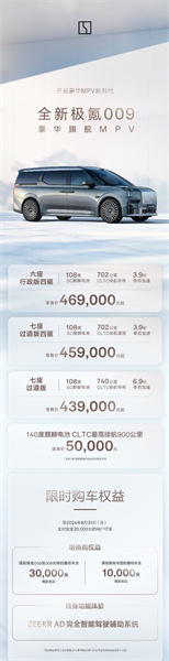 全新极氪009官方售价&权益