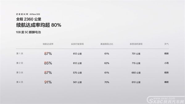 为验证续航性能,极氪联合多家权威媒体,驾驶全新极氪009从北京开到香港全程直播实测,在超过2200公里的总里程中,全新极氪009只充了三次电,无论是108度电池版本,还是140度电池版本,每一段路程的续航达成率均超过了80%。事实证明,全新极氪009就是一台没有里程焦虑的纯电MPV。