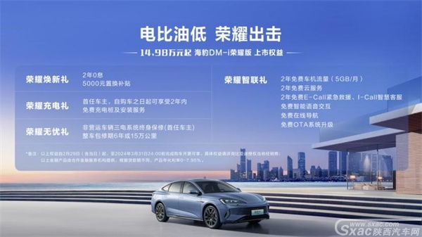 伴随宋PLUS荣耀版、海豹DM-i荣耀版的上市,比亚迪还准备了多重购车礼遇,自上市之日至3月31日24:00前完成购车开票,购买宋PLUS荣耀版可享2年0息、4000元置换补贴、全系2年免费云服务和车机流量(5GB/月)等多重礼遇。