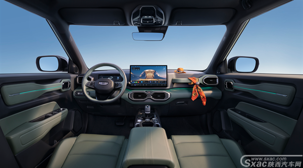 牛仔的内饰设计也极具越野感和科技感,车内趣野把手、护目镜式空调出风口等越野特征独具匠心,256色氛围灯,多色可选,多档亮度可调,开门迎宾,氛围灯颜色呼吸渐变,联动三种驾驶模式,随意切换;牛仔皮质拼接座椅还压印"born free",让用户尽享驾趣之乐。