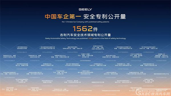 吉利也不断基于"安全"进行创新。在不久前中汽中心公布的自主整车集团汽车安全专利公开量排行榜上,吉利以1562项安全专利公开数,位列中国车企第一。