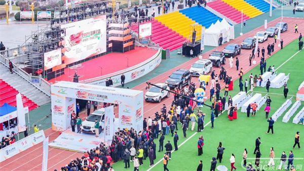 发车仪式上,领导嘉宾为此次赛事的参赛车辆挥旗发车,感受新能源汽车带来的绿色出行新风尚。