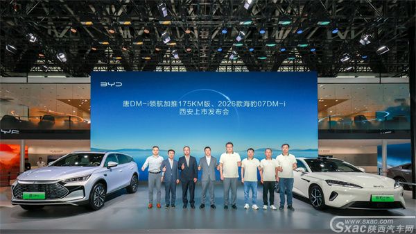 【陕西汽车网讯】2025年9月30日,第二十届西安国际车展在西安国际会展中心开幕。当天上午,比亚迪展台举办了唐DM-i领航加推175KM版、2026款海豹07DM-i西安上市发布会。