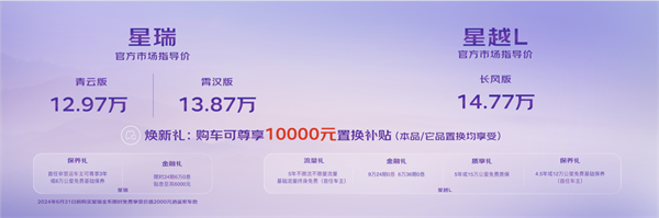 【陕西汽车网讯】2024年3月26日,“中国星·文旅中国探索计划”第二季于成都首站再次起航,星瑞2.0TD青云版、霄汉版,星越L长风版以及星越L智擎星云版正式加新上市,官方指导价分别为12.97万元、13.87万元、14.77万元、3.97万元,并推出“10000元置换礼”等多重购车权益,2024年6月31日前购买星瑞全系还可限时免费享受价值2000元逍遥紫车色,进一步满足用户更新更多元的高价值选择。同时,“中国星百炼成角安全试炼营”也在本次活动中正式开营,成功完成超高还原、超纲标准、超高难度的“星瑞极限五连撞试炼”和“星越L魔鬼秋千试炼”,实力印证中国星刻进骨子里的高安全基因和硬核品质实力。