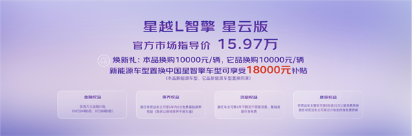 同时,基于SUV用户对多样化动力需求的强烈呼声,星越L2.0TD+7DCT长风版和星越L智擎星云版也加新而来,以更优的价位选择、更高的版型配置,全面满足更多用户对于驾控性能、经济节能的不同喜好和高价值体验需求。